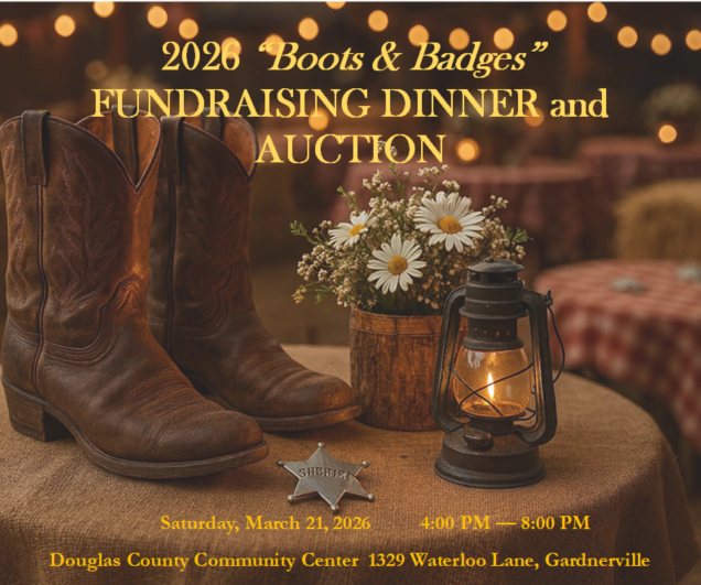The DCSAC “Boots and Badges” annual fundraising dinner and Live Auction will be held on Saturday, March 21, 2026 at the Douglas County Community Center, 1329 Waterloo, Gardnerville, NV.
